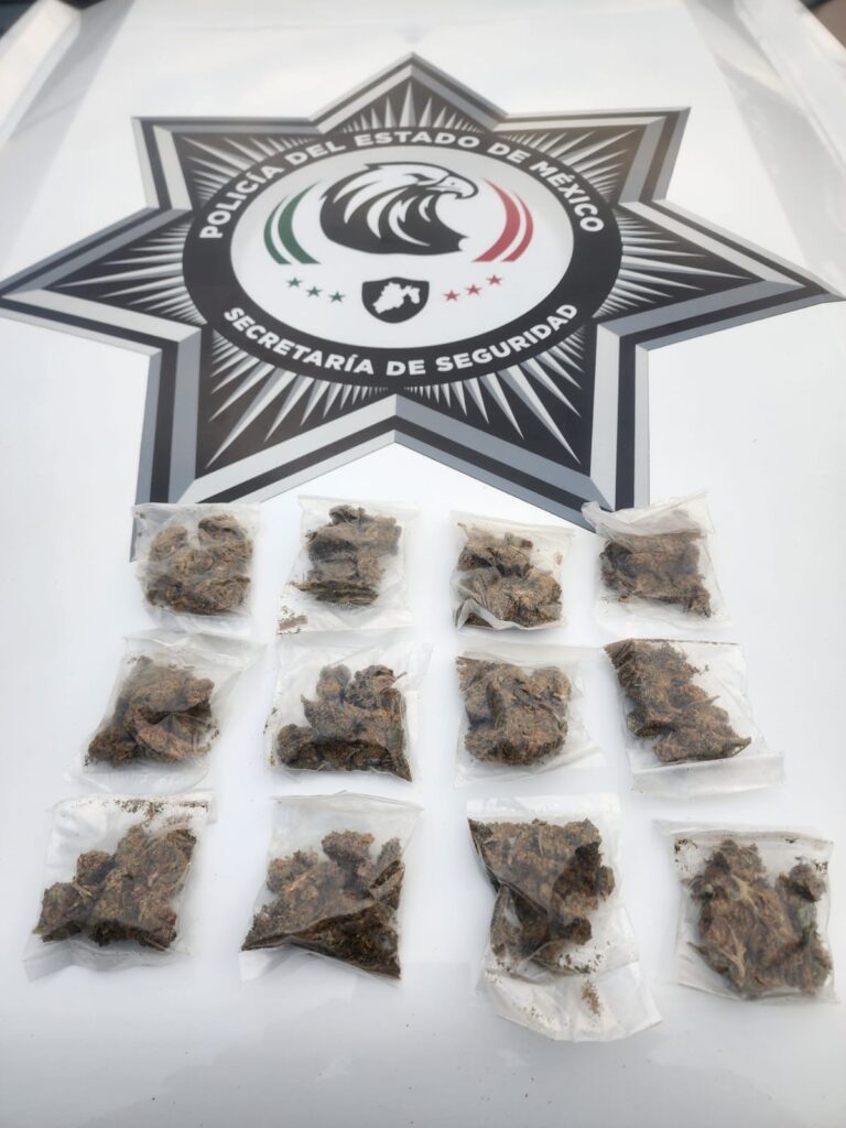 El sujeto fue interceptado sobre la Avenida Chalma, en la colonia Jardines de la Hacienda, a las afueras de una plaza comercial. Al realizarle una inspección, los uniformados aseguraron a Miguel “N”, de 32 años, varias dosis de aparente marihuana, distribuidas en pequeñas bolsas de plástico.