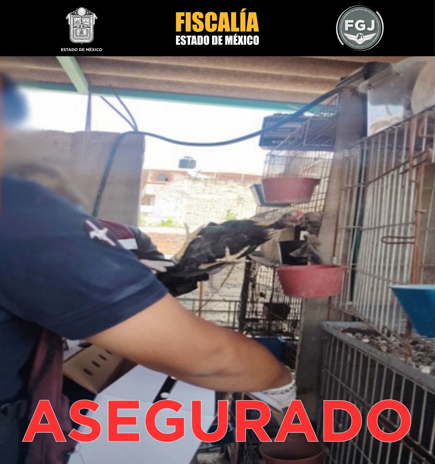 Las aves quedaron bajo resguardo de la unidad de Bienestar Animal, mientras que los inmuebles fueron asegurados y continúan las investigaciones para ubicar a los responsables.