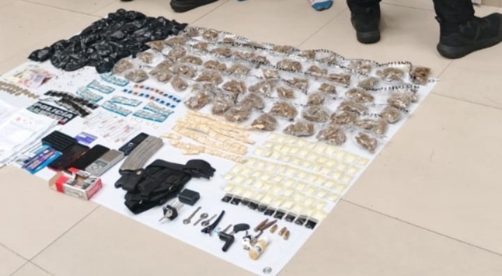 Bolsas con hierba verde con características de la marihuana. Empaques con una sustancia similar a la cocaína. Siete cápsulas con probable cristal. Un cargador de arma de fuego y cartuchos útiles.