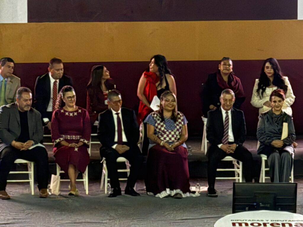 La gobernadora Delfina Gómez Álvarez atestiguó el Primer Informe Legislativo de diputadas y diputados federales mexiquenses de Morena, realizado en el Teatro Morelos de Toluca.