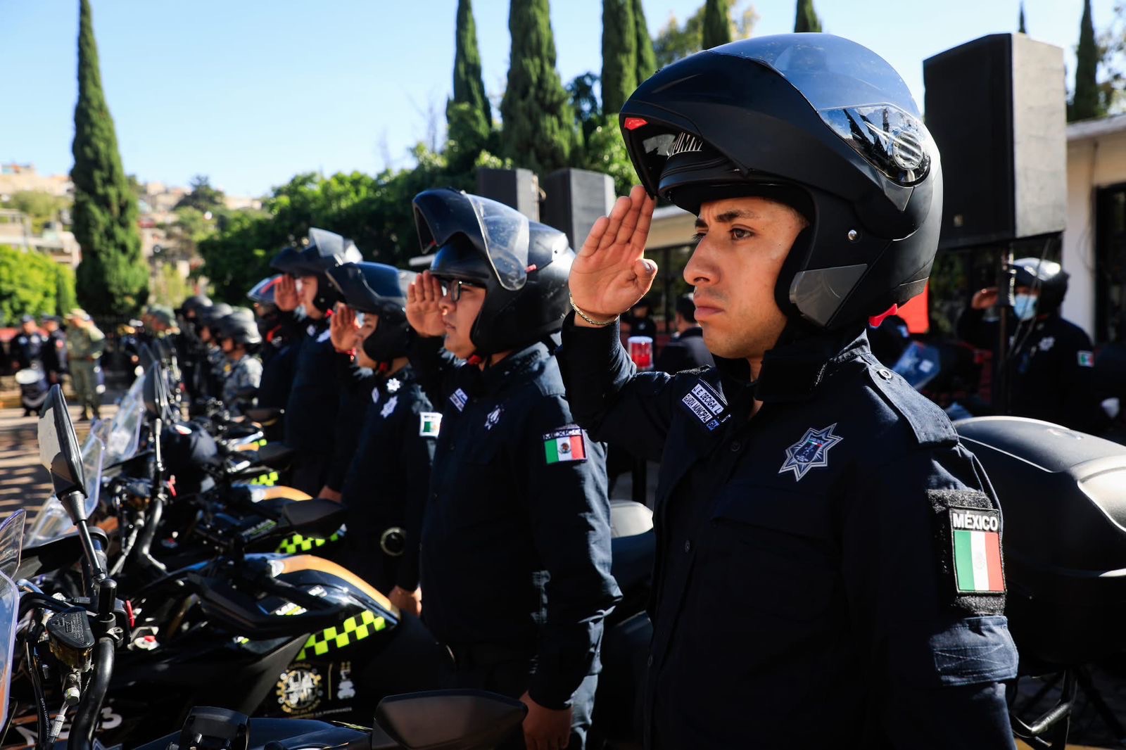 Para fortalecer las acciones de seguridad y continuar con la disminución de la incidencia delictiva en el municipio, el alcalde Isaac Montoya Márquez entregó 20 motopatrullas a la Guardia Municipal en el Parque Las Cuevitas de San Antonio Zomeyucan.